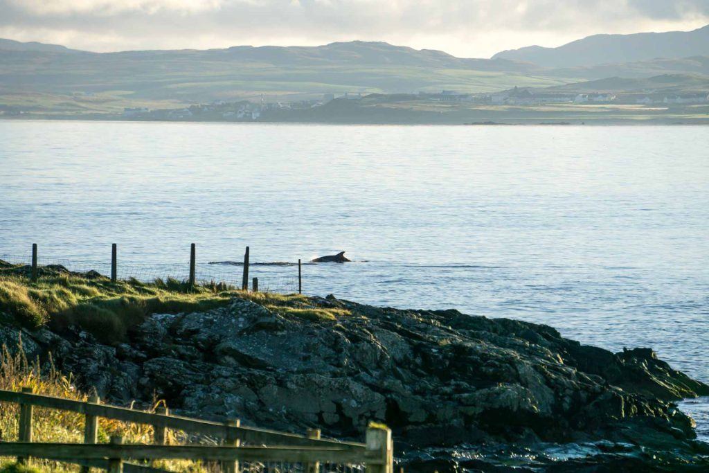 We awoke this morning to a wonderful sight – dolphins swimming up the loch! I have seen a few seals and otters over the past 16 months, but this is my first sighting of dolphins. There were approx 6 of them, mayhaps more, it was a bit hard to tell. The sun was out in its glaringly full glory which made seeing the cetaceans a little difficult.